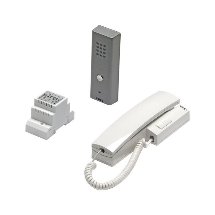This compact audio entry kit includes all components required for a single-entrance installation using Videx slim line panels.