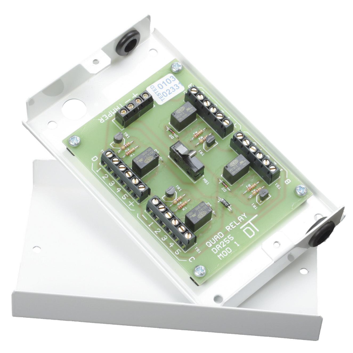 The DA255 provides four SPCO relay outputs within a tamper-protected enclosure, ideal for access control and alarm integrations.