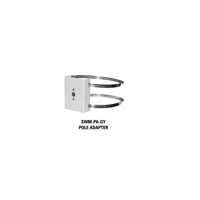 Pole adapter accessory enabling Pelco wall mounts to be securely installed on poles.