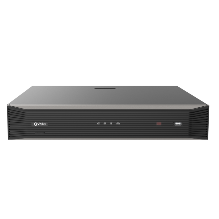 The VIP 16 & 32 channel network video recorders are Vista’s highest-spec NVRs, allowing for superior data throughput and recording capacity and supporting cameras up to 12MP image resolution along with 4K monitors—multiple fisheye dewarping modes for live view and playback across both web interface and GUI. You also benefit from SMART Video Analytics Inc. Intrusion, Cross Line, Enter & Leave Area, Defocus, Scene Change, Object Left/Removed, Auto Tracking, and People Flow Counting.